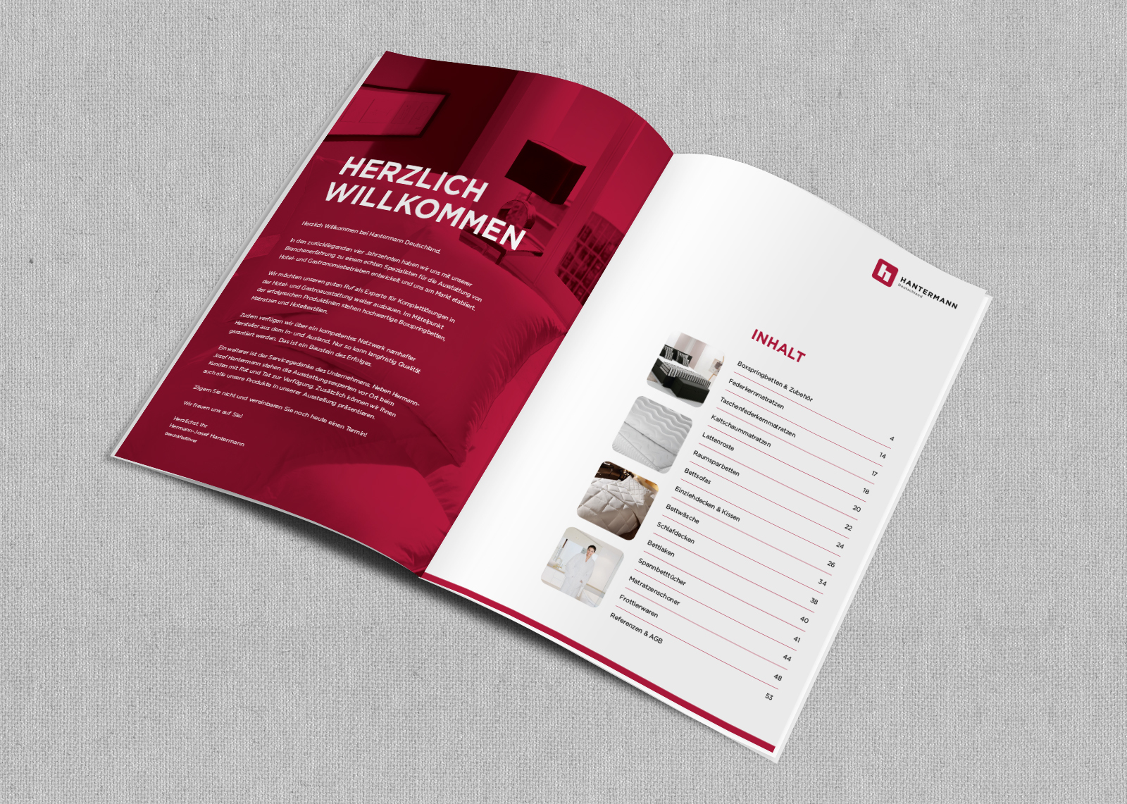 Stilvoll und elegant sind die Möbel- und Ausstattungsstücke, die Herr Hantermann und sein Team den Kunden aus Gastronomie- und Hotelgewerbe anbietet. Wir unterstreichen die Firmenphilosophie mit einem seriösen Corporate Design, das wir bereits bei der kompletten Geschäftsausstattung und dem 60-seitigen Hotelkatalog eingesetzt haben.