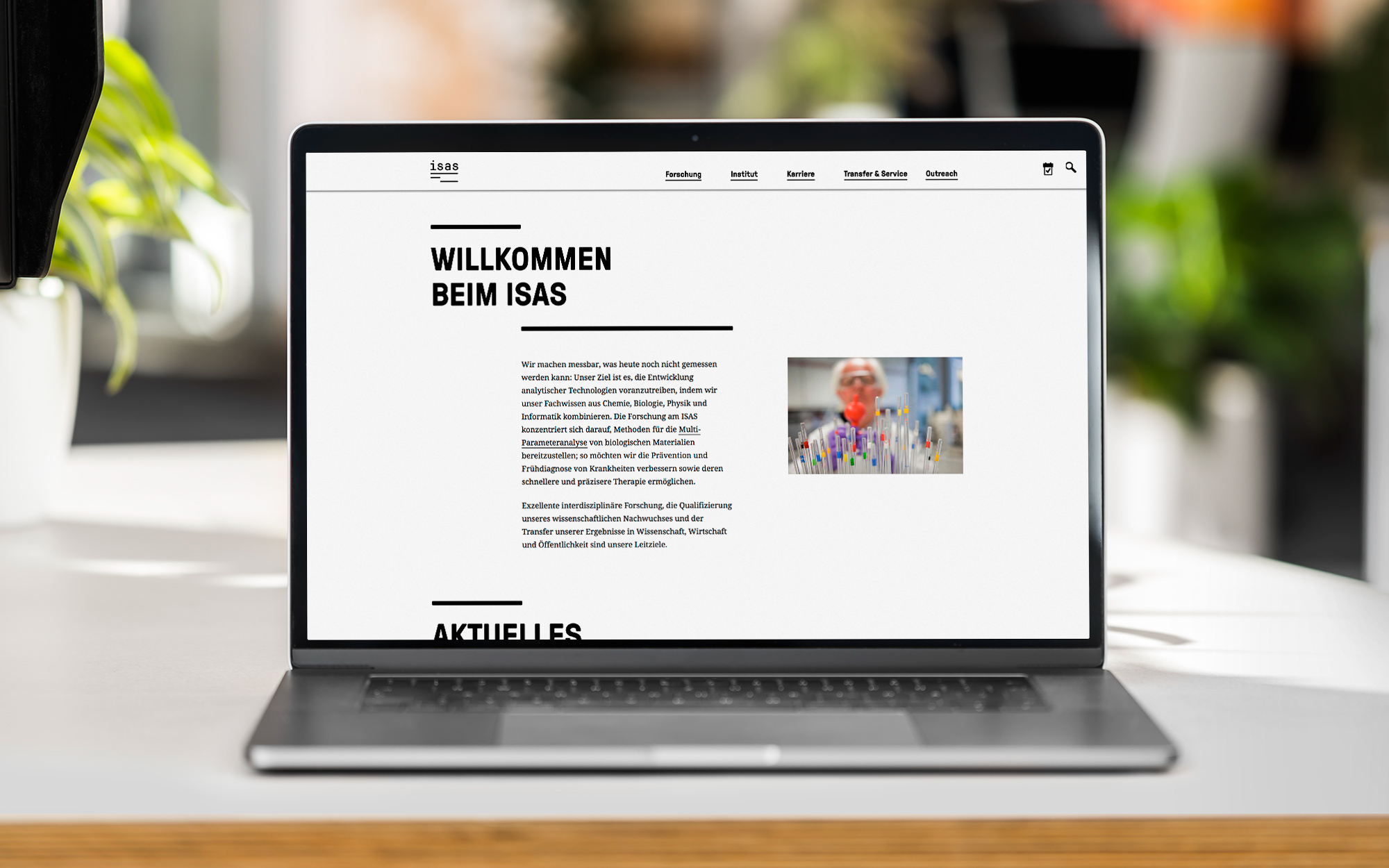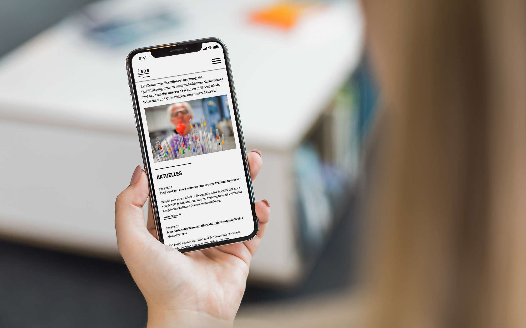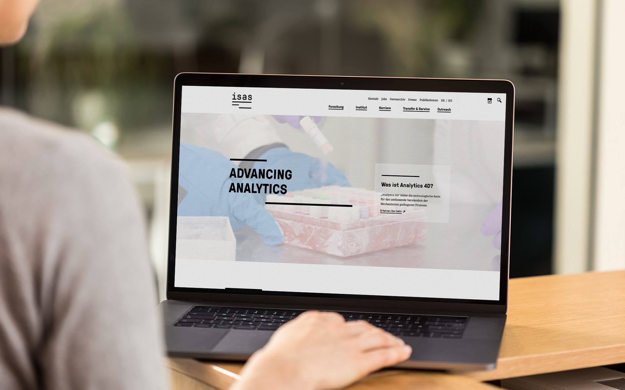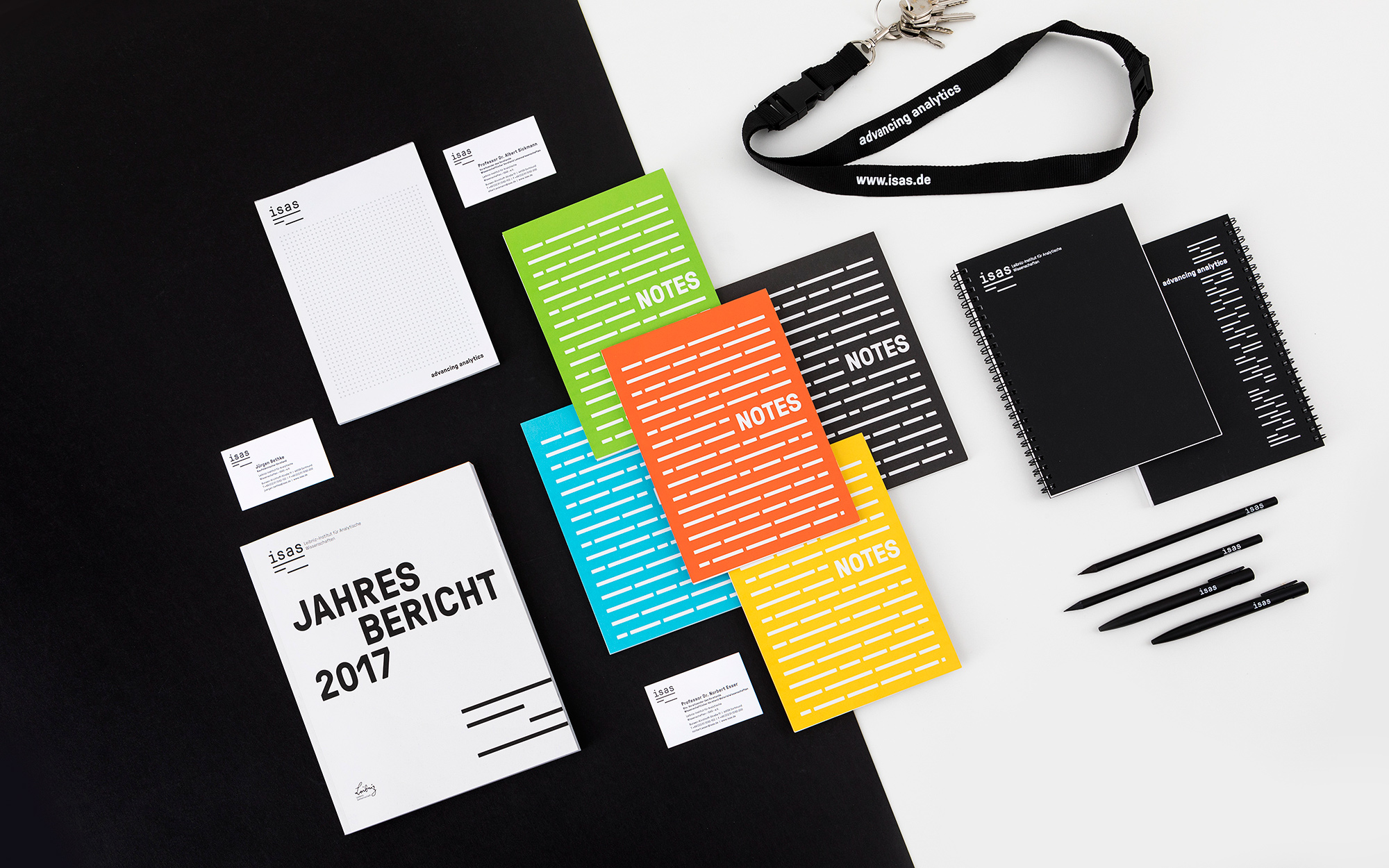 Mehr als 70 Wissenschaftlerinnen und Wissenschaftler aus unterschiedlichen Disziplinen von Chemie bis Informatik arbeiten am Leibniz-Institut für Analytische Wissenschaften – ISAS – e. V. An drei Standorten in Dortmund und Berlin entstehen innovative Beiträge zur Lösung analytischer Herausforderungen in den modernen Material- und Lebenswissenschaften. Einen besonderen Schwerpunkt bildet die Entwicklung und Optimierung neuartiger Messverfahren und Geräte für die Gesundheitsforschung. Angesichts des international geführten Konkurrenzkampfs um junge, kluge Köpfe ist es für das ISAS enorm wichtig, sich als modernes Institut mit fortschrittlichen Ideen präsentieren zu können. Dazu wurde das Corporate Design vollständig überarbeitet. Das neue Logo visualisiert den Analyseprozess, das Kerninteresse des ISAS. Gleichzeitig verweist die Bildmarke auf den interdisziplinären Charakter des Instituts. Zahlreiche passende Medien wie die responsive Drupal 8-Website, eine umfassende Geschäftsausstattung, das Berichtswesen sowie ein digitales Kundeninformationssystem vervollständigen den Auftritt und ermöglichen es dem ISAS, sich erfolgreich als innovativer Impulsgeber zu positionieren.