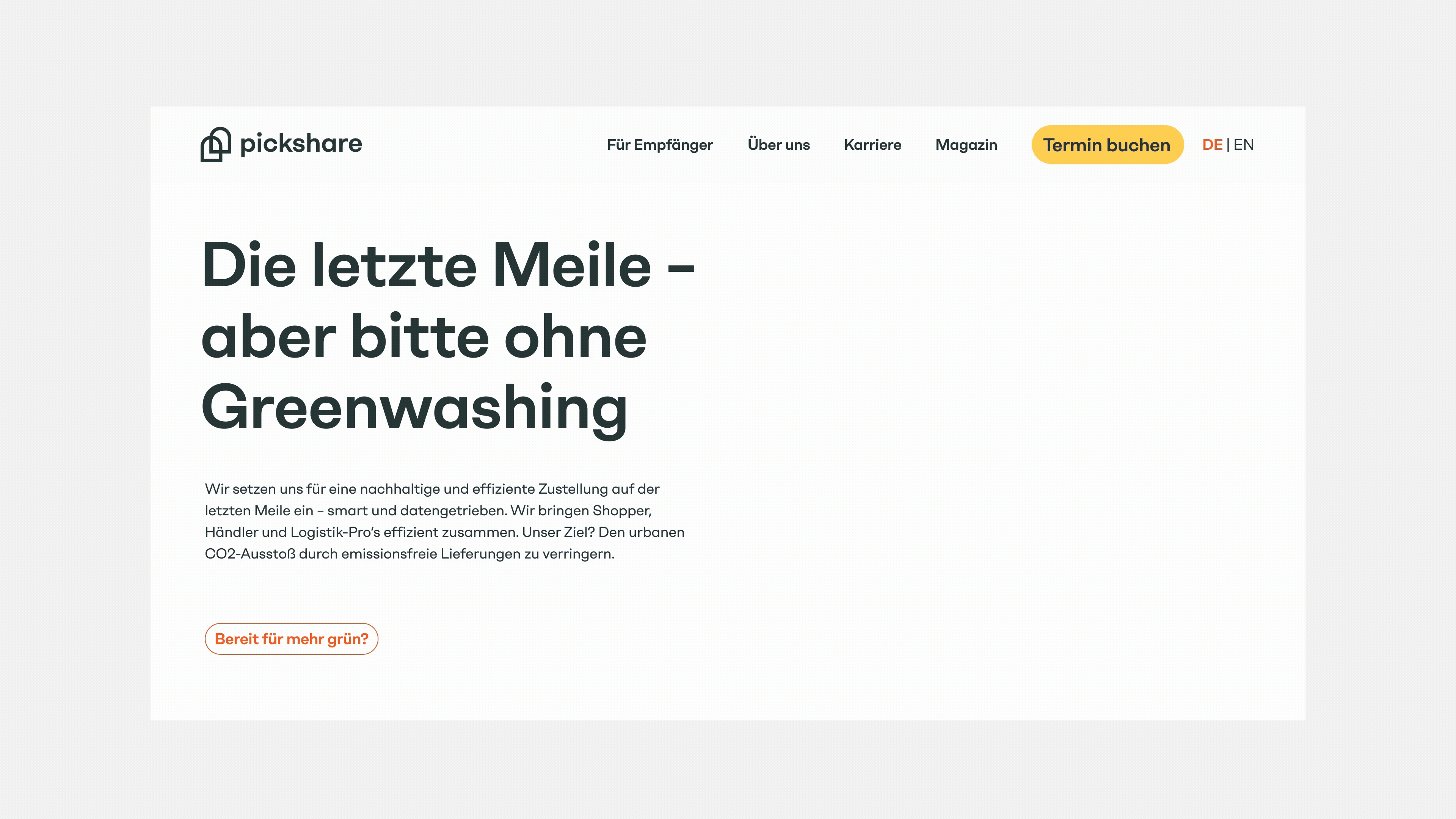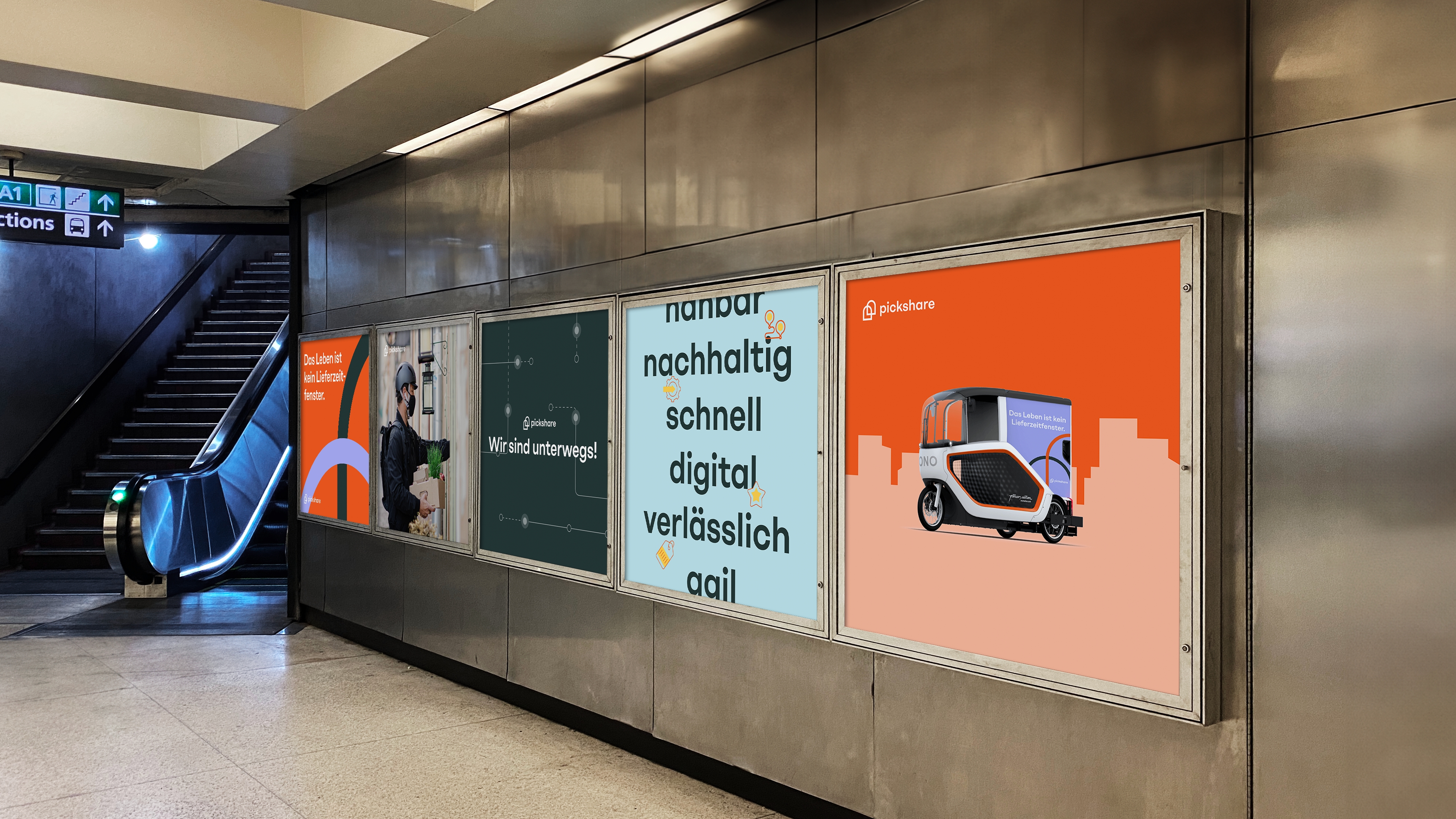 pickshare steht für eine nachhaltige Logistik‑Revolution auf der letzten Meile: datengetrieben, CO₂‑reduziert und smart vernetzt. Pakete klimafreundlich und smart zustellen? Das zeichnet pickshare aus. Die Plattform agiert als Schnittstelle zwischen Händler:innen, Shopper:innen und städtischer Infrastruktur, mit dem Ziel, emissionsfreie Zustellung zur Realität zu machen. Unsere Aufgabe bestand darin die bestehende Markenidentität in ein visuelles System zu überführen, das genauso lebendig, nahbar und agil ist, wie die Marke selbst. Vom digitalen Raum bis in die physische Welt haben wir pickshare eine neue visuelle Markenpräsenz verliehen. Herzstück ist das Torbogen-Motiv, zwei Türen, die sich verbinden. Ein Symbol für pickshare als Schnittstelle zwischen allen Beteiligten. Eine bunte Markenwelt, die nachhaltig und sofort wiedererkennbar ist.