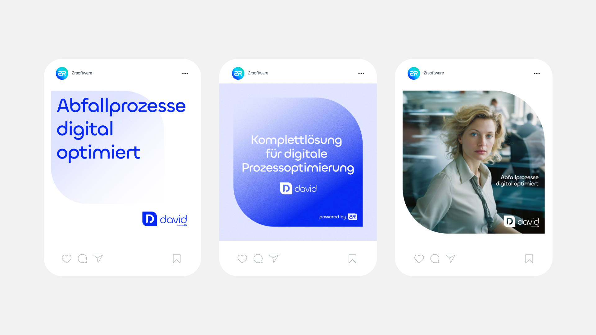 Seit 20 Jahren spezialisiert sich 2R software auf Digitalisierungslösungen für Abfallprozesse. Sie bieten smarte Software, die den Unternehmen der Abfallwirtschaft und des Abfallmanagements dabei hilft, ihre Arbeitsabläufe effizienter, nachhaltiger und automatisierter zu gestalten. Der Markenkern von 2R software ließ sich für uns klar ableiten: Prozesse digitalisieren und nachhaltig optimieren. Dies wurde in ein modernes, visuell fortschrittliches Design übersetzt, das die visionäre Innovationskraft des Unternehmens transportiert.