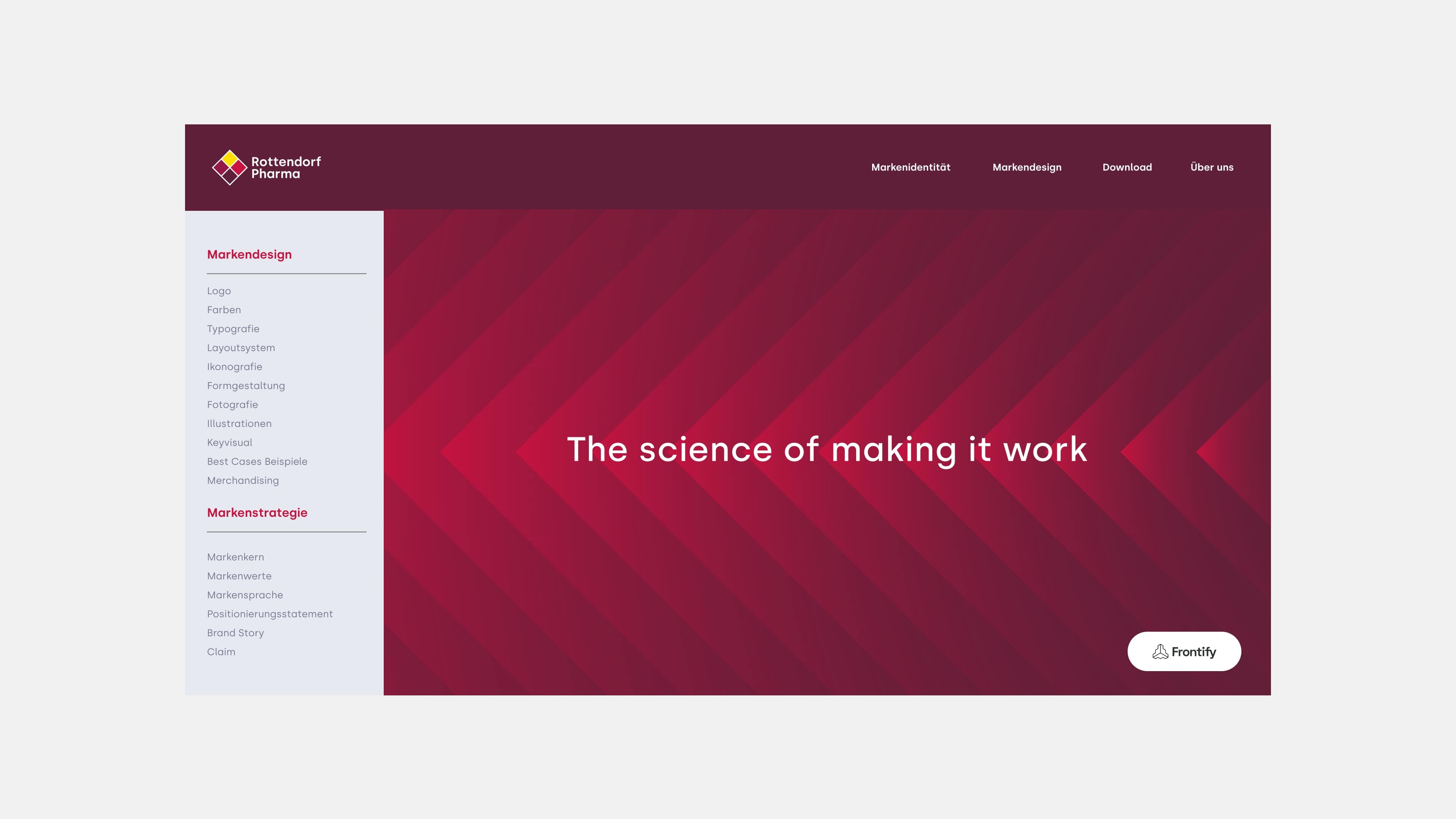 Rottendorf Pharma ist ein internationaler pharmazeutischer Auftragsentwickler und -hersteller (CDMO). Seit Generationen entwickelt, produziert und verpackt das Unternehmen feste Darreichungsformen für Kund:innen weltweit. Als CDMO begleitet Rottendorf Pharma seine Partner entlang der gesamten Wertschöpfungskette, von der Entwicklung über Analytik bis hin zur Verpackung. Getragen wird diese Arbeit von einem Qualitätsanspruch, der aus Tradition gewachsen ist und durch ein klares, beständiges Werteverständnis geleitet wird. Mit der entwickelten Markenidentität machen wir dieses Selbstverständnis sichtbar und stärken die Positionierung eines Unternehmens, das seit Generationen Verantwortung trägt. Wir haben die Marke entlang ihrer tatsächlichen Stärken weiterentwickelt, denn der Schlüssel lag darin, jene Strukturen, Prozesse und Werte sichtbar zu machen, die bisher eher im zurückgenommenen Bereich wirkten. Das verlässliche, verantwortungsbewusste Arbeiten im Sinne der Partner. Uns ist es gelungen, sie in ein Design zu übersetzen, das genau dieses Selbstverständnis widerspiegelt.