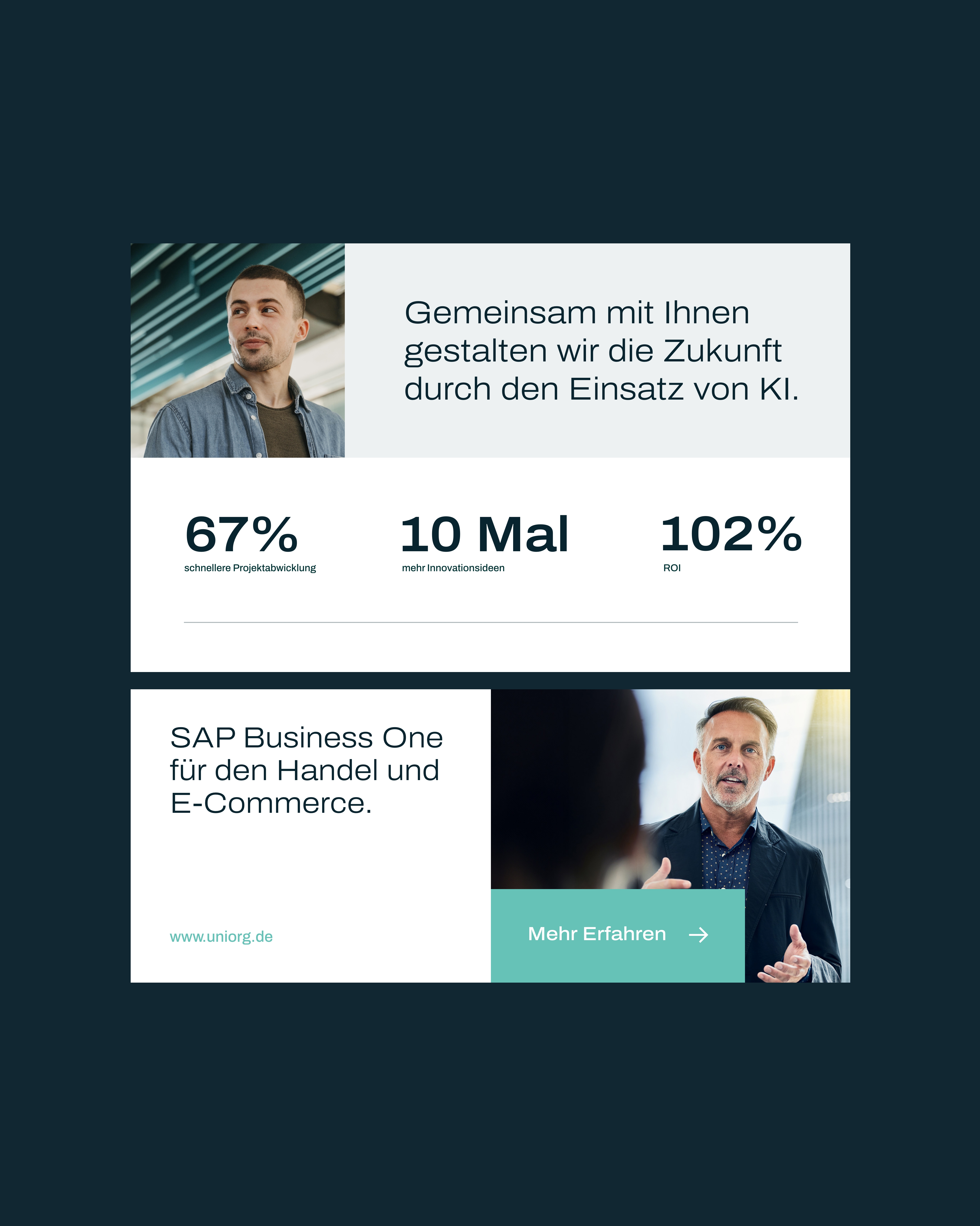 Als erfahrener Partner im SAP-Umfeld begleitet UNIORG sowohl mittelständische als auch global agierende Unternehmen weltweit bei der Optimierung ihrer SAP-Geschäftsprozesse und setzt dabei neue Maßstäbe in der digitalen Transformation. Das Rebranding macht diese Kompetenz greifbar: Ein moderner Auftritt für eine Marke, die seit 1974 Erfolgsgeschichte schreibt. Die neue Markenpräsenz verkörpert, wofür UNIORG steht: jahrelange Expertise, ehrliche Leidenschaft, kundenorientierte Verlässlichkeit und eine klare Zukunftsvision. All das wird sichtbar in einem reduzierten Farbschema, das Seriosität vermittelt, einer modernen Typografie mit technologischer Anmutung und einer dynamischen Bildwelt, die Fortschritt und partnerschaftliche Expertise visuell erlebbar macht.