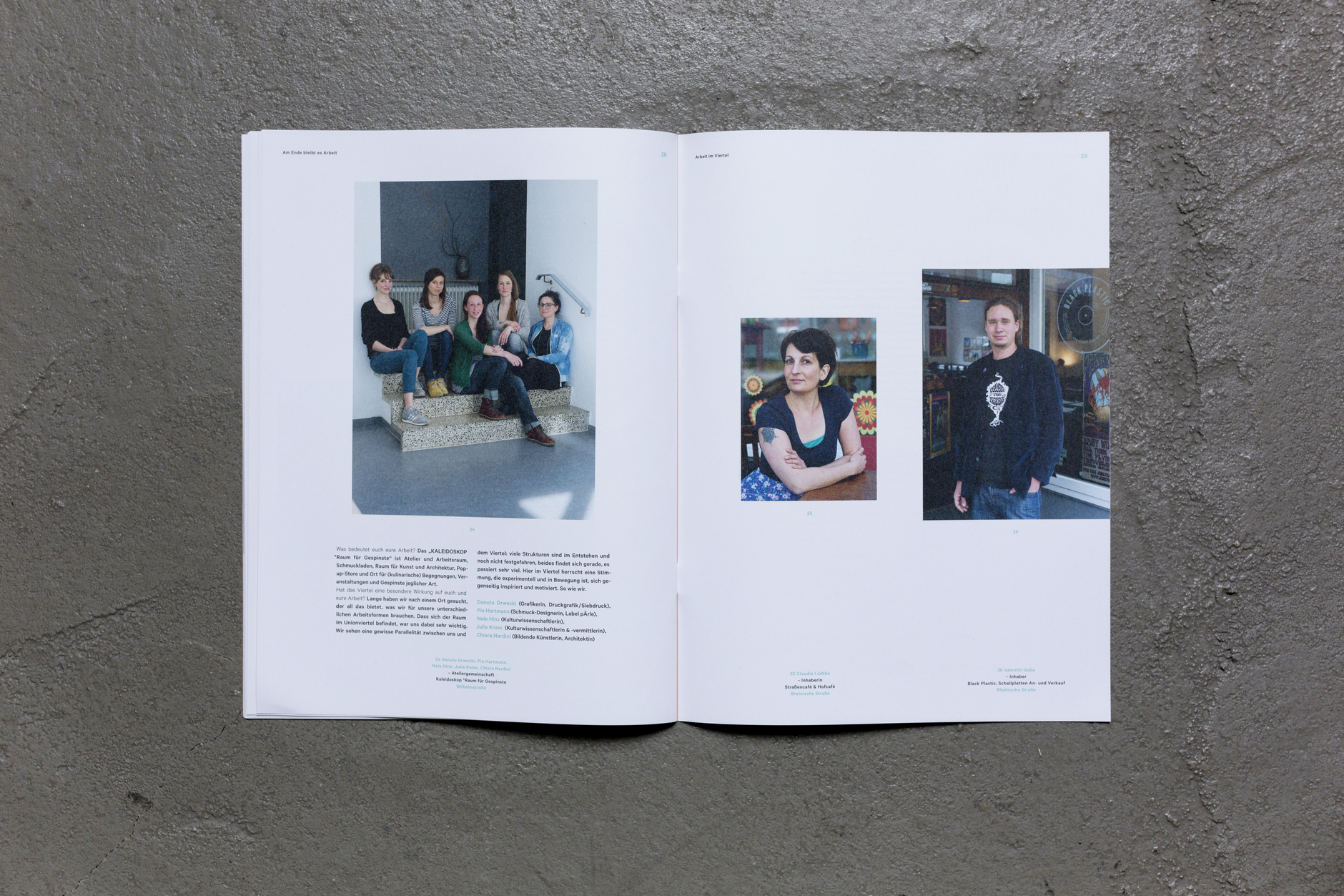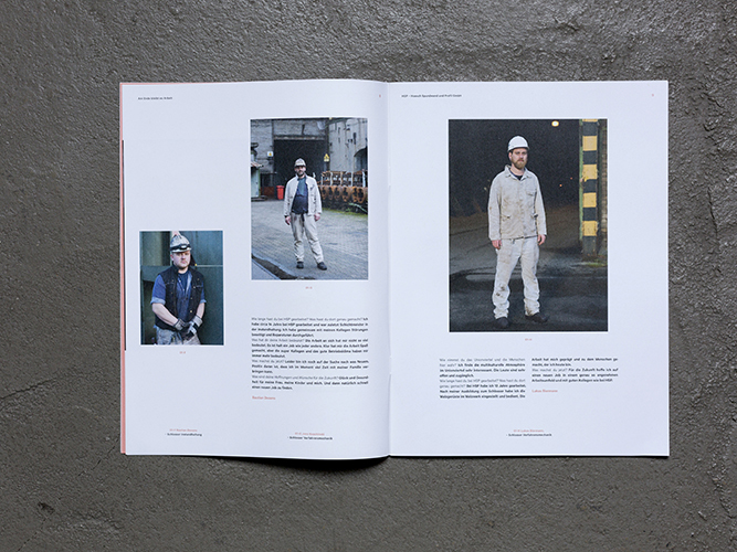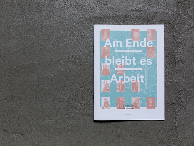 Die Fotozeitung Am Ende bleibt es Arbeit - eine fotografische Exkursion in die Arbeitswelten des Unionviertels entstand 2016 im Rahmen der Westpassage. Die Westpassage ist ein Projekt des Union Gewerbehofs Dortmund. Gefördert vom Ministerium für Familie, Kinder, Jugend, Kultur und Sport des Landes Nordrhein-Westfalen im Förderrahmen der Kreativ. Quartiere Ruhr. Konzeption, Fotografie, Interviews: Sabrina Richmann Gestaltung: Danuta Drwecki Erste Auflage 2016 / 500 Exemplare