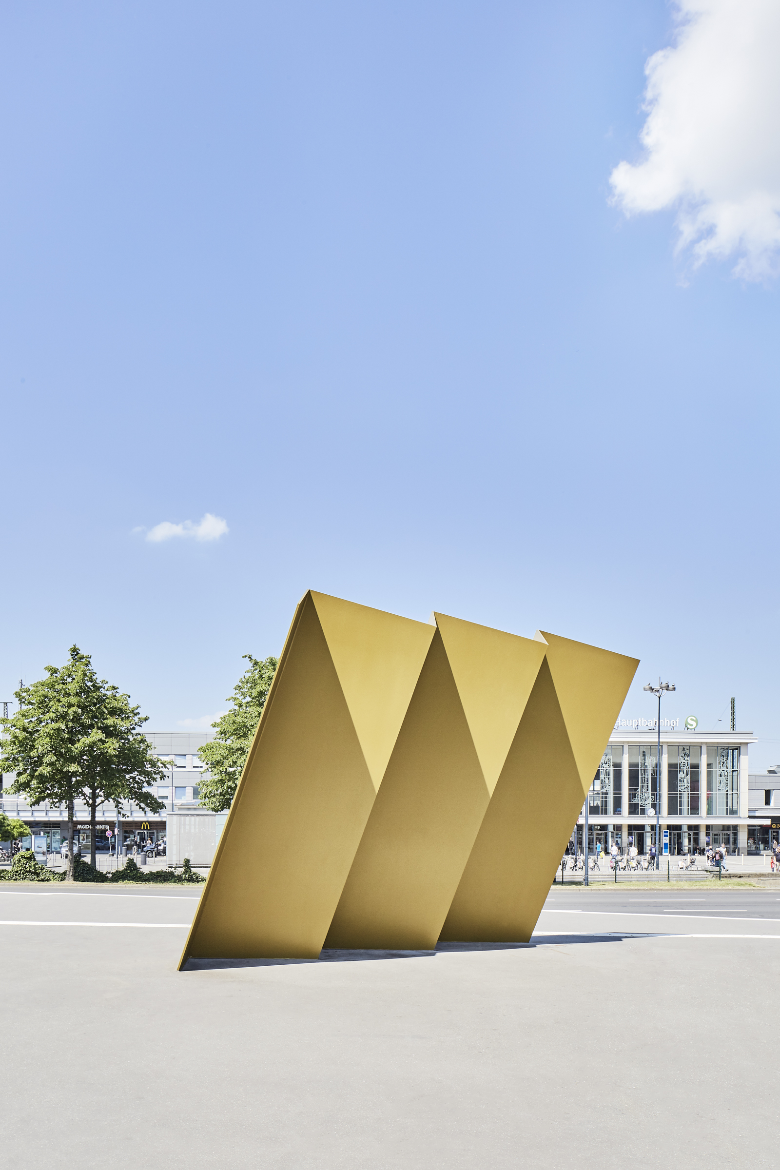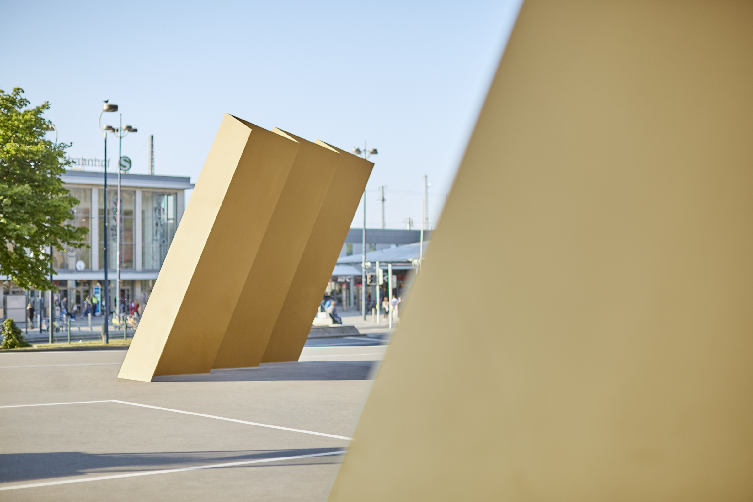 Anlässlich der Sonderausstellung „FußballLeben Ruhrgebiet“ im Rahmen des regionalen Kulturprogramms „Schichtwechsel“ wurde der Vorplatz des Deutschen Fußballmuseums neu konzipiert und gestaltet. Das modulare Stadtmobiliar aus Beton und Ausstellungselementen lehnt sich gestalterisch an das Thema „Bolzplatz“ an. Die bereits vorhandenen Stahlskulpturen werden als goldene Trophäen präsentiert. Fotos: Annika Feuss