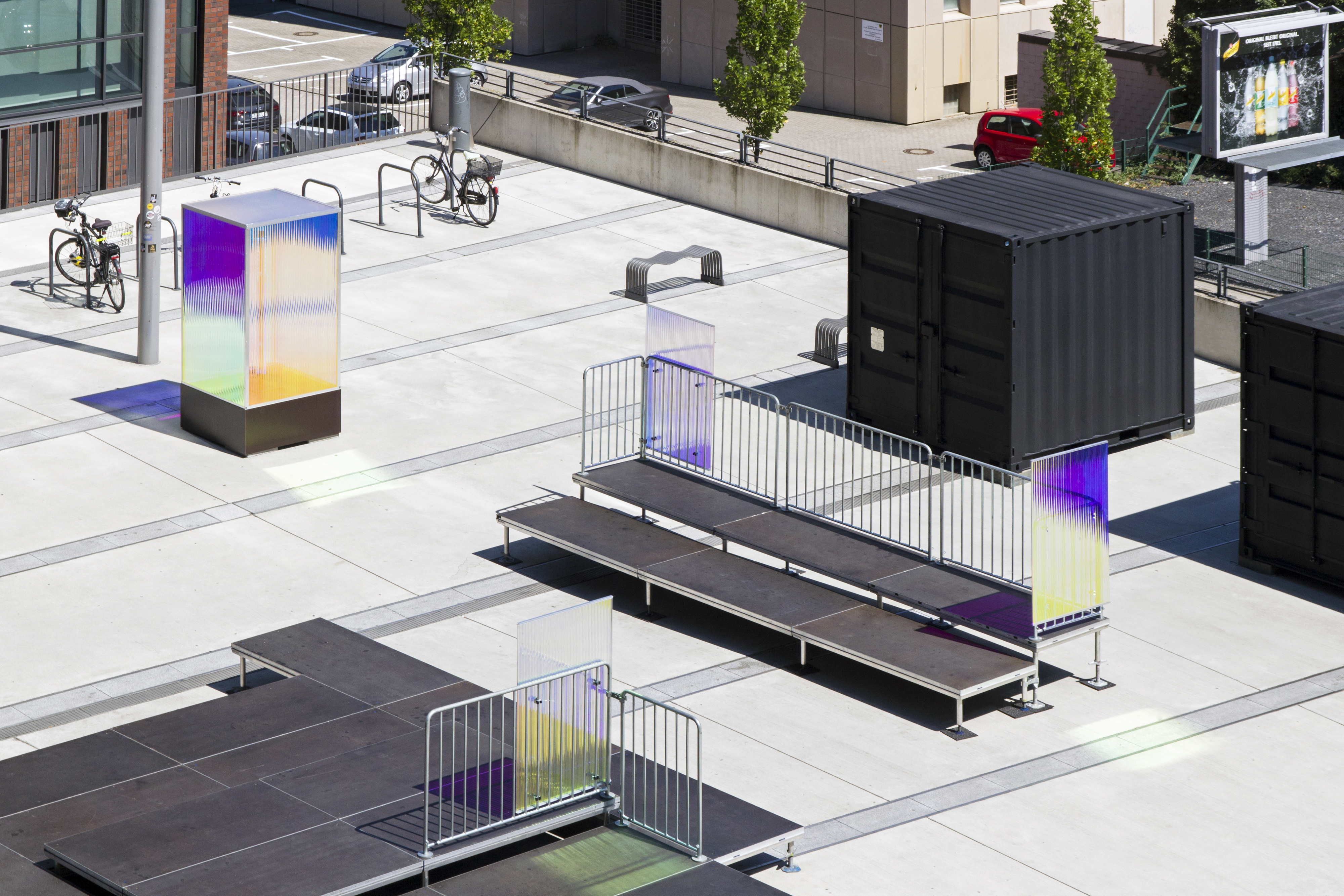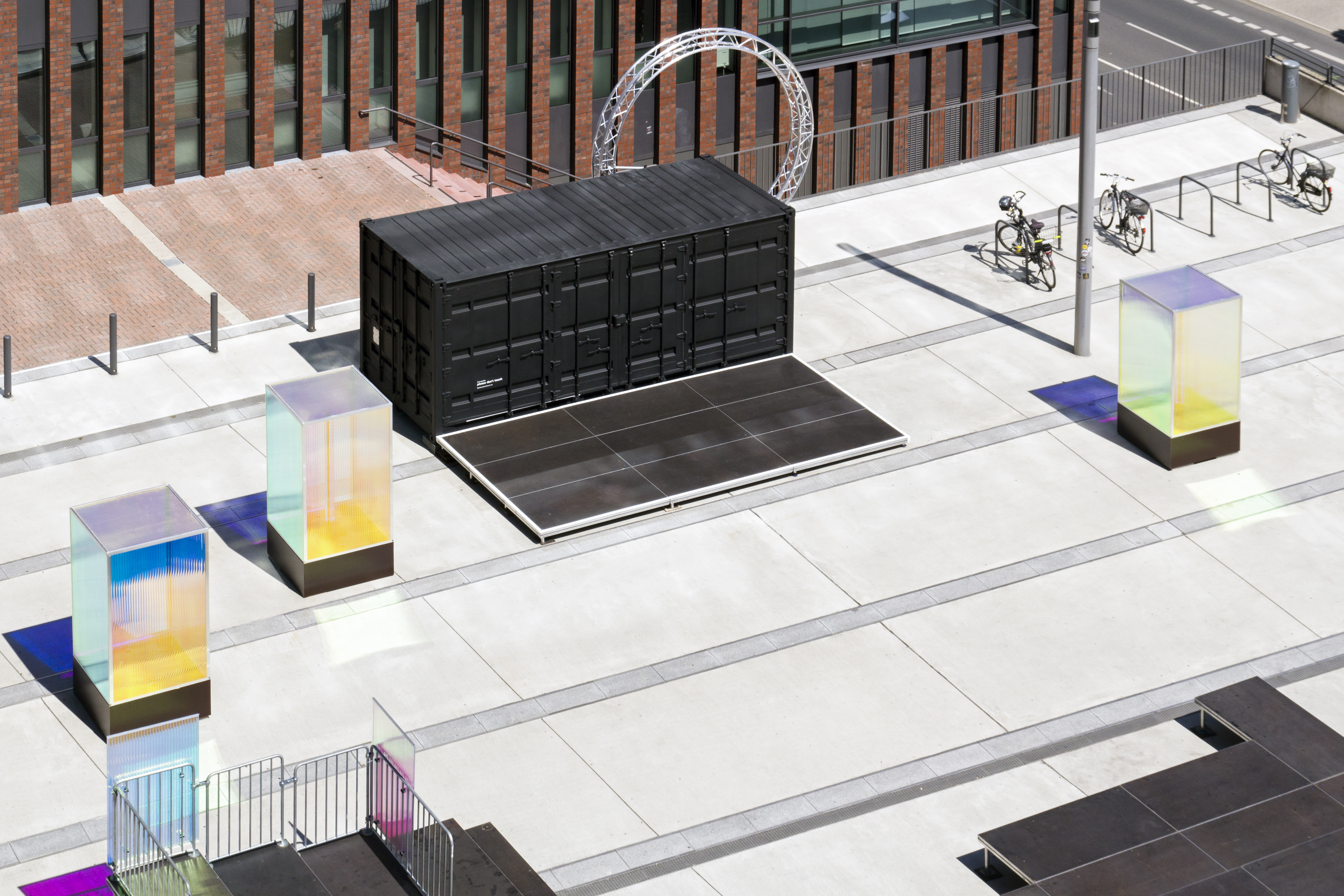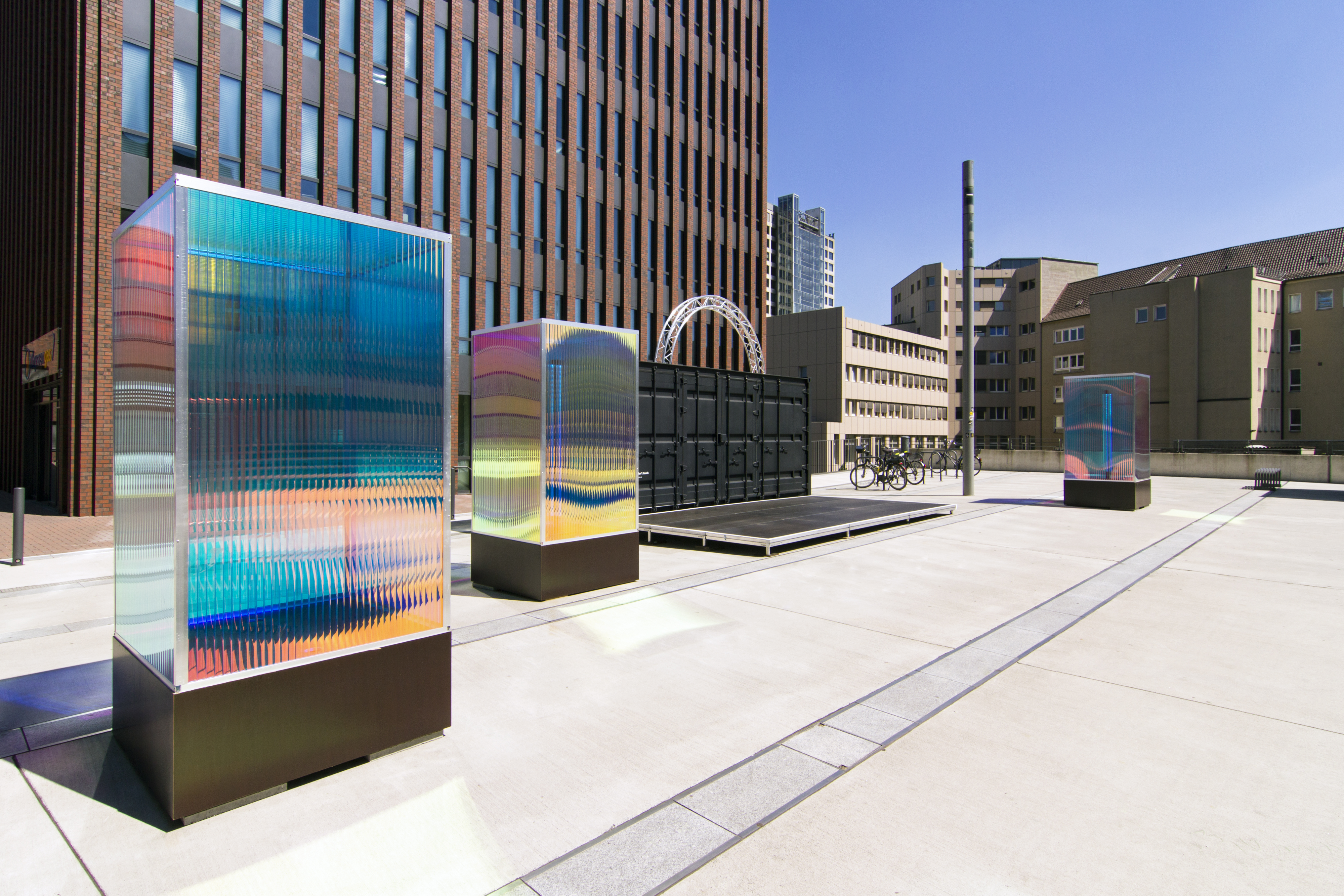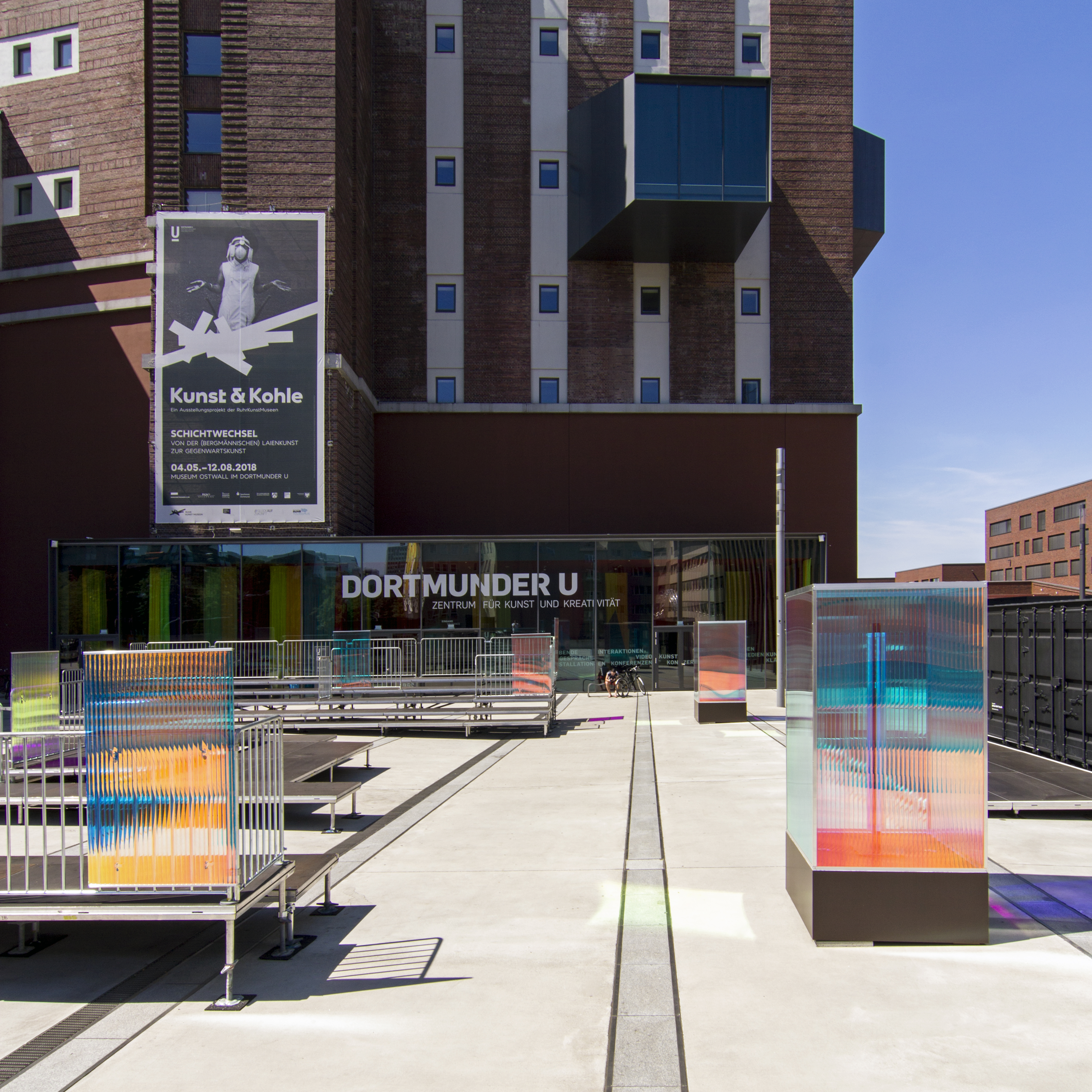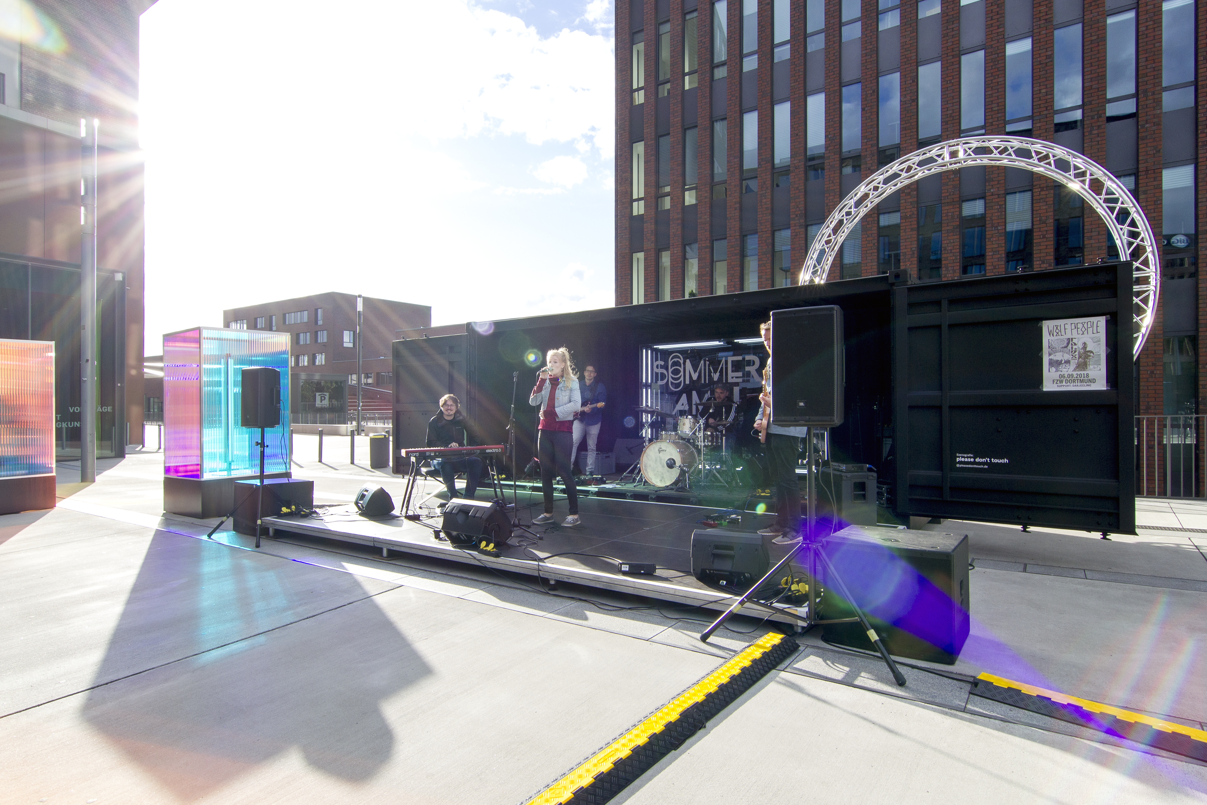 Der Sommer am U ist eine Veranstaltungsreihe über mehrere Monate mit Konzerten, Lesungen und Poetry-Slams auf dem Vorplatz des Dortmunder U. In einer neuen, postmodernen Vision mit kühler und anziehender Inszenierung, futuristischen Elementen und schillernden Lichteffekten inspiriert von Science-Ficiton Filmen, präsentiert sich der Vorplatz in seinem neuen Gewand. Die matt-schwarzen Container werden zur Bühne, die Besucher:innen sitzen auf Tribünen.