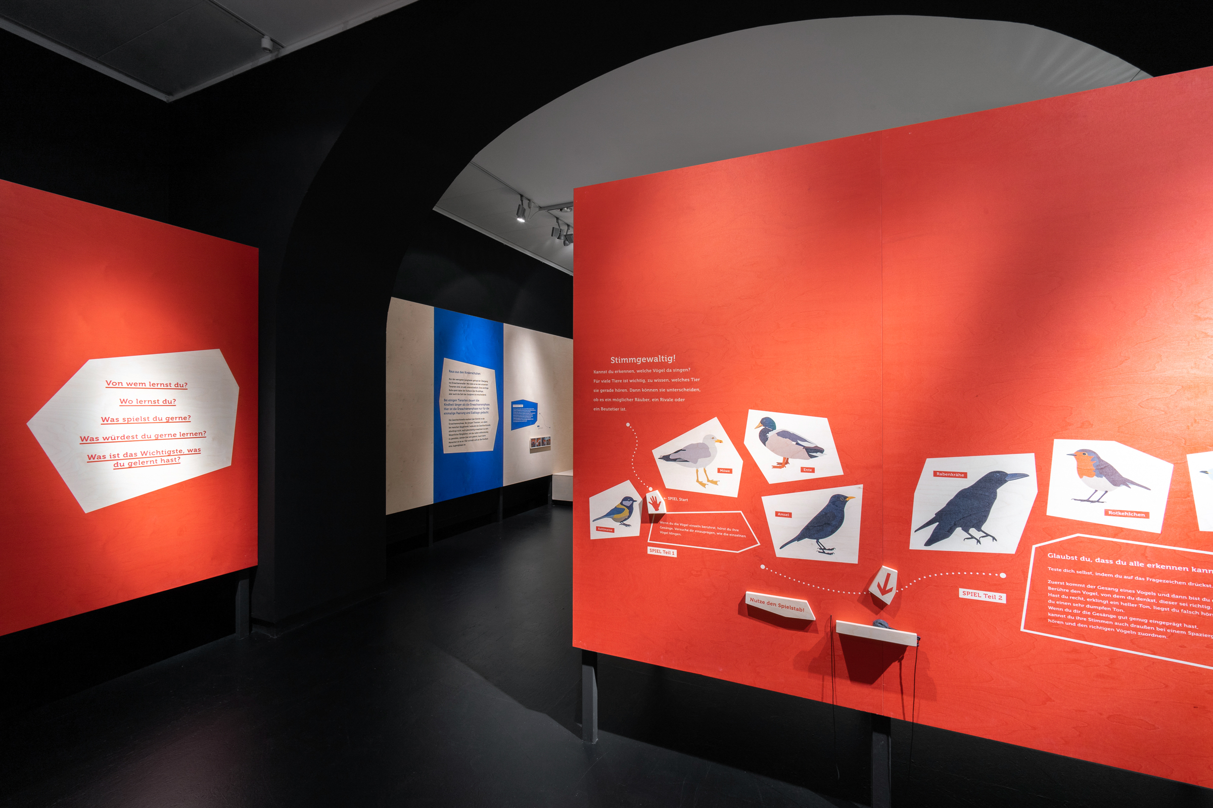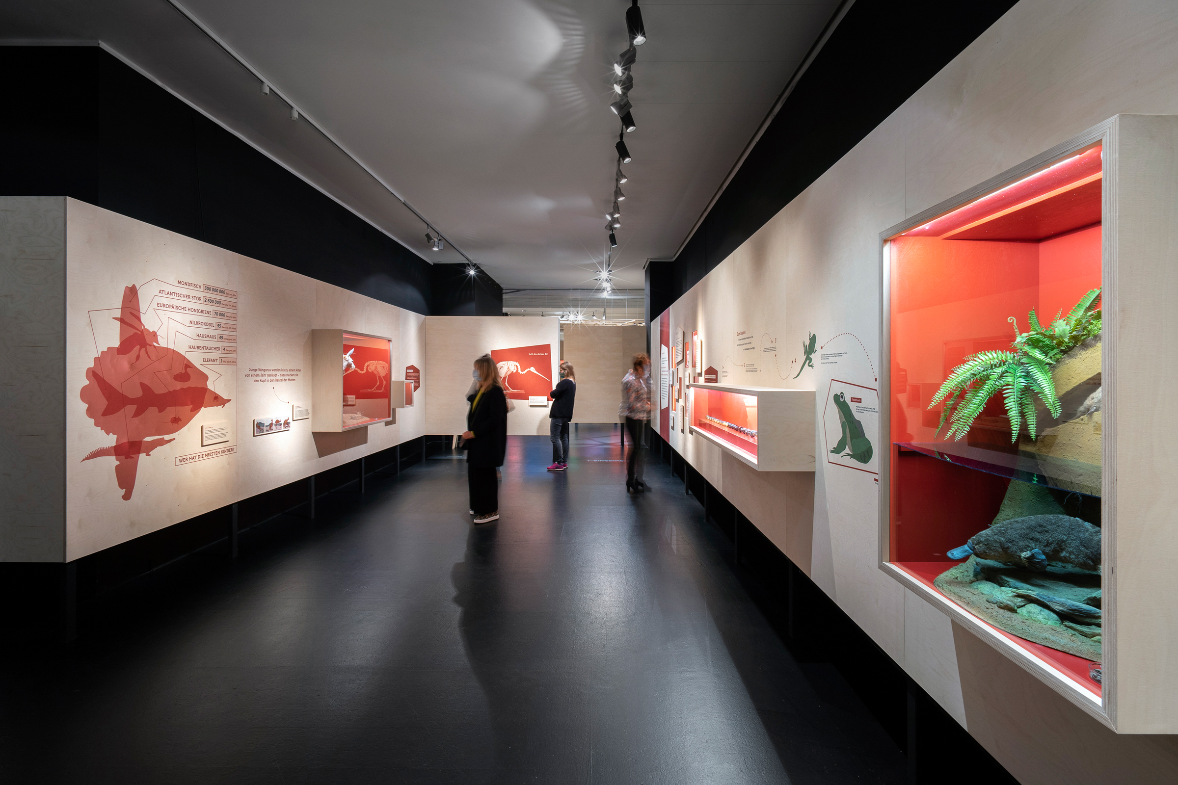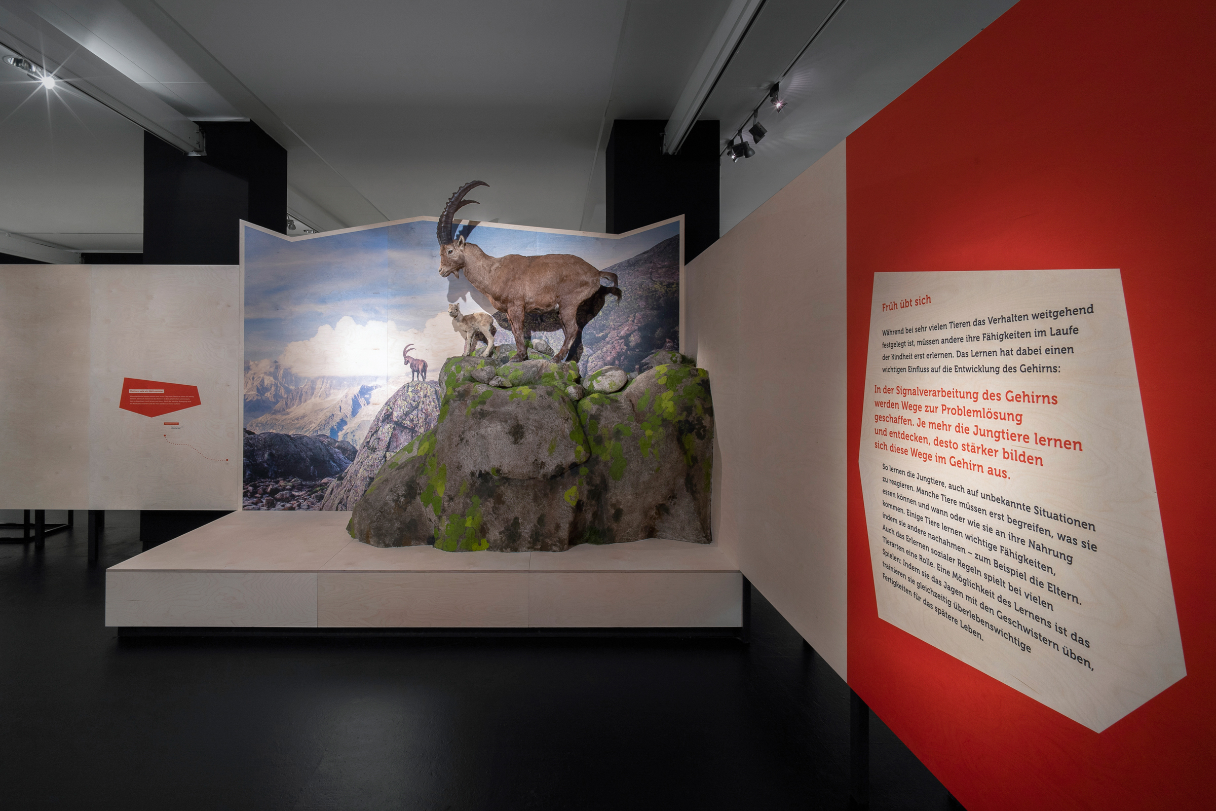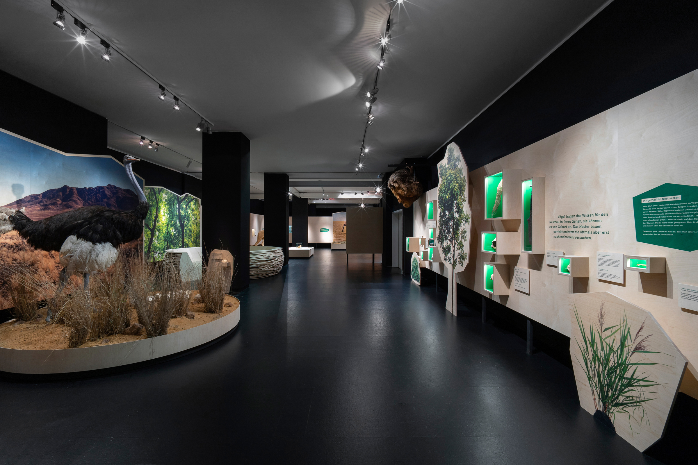 Das Übersee-Museum gibt in seiner neuen Ausstellung "Junge Wilde" einen Einblick in die Kindheit und Jugend von Wildtieren. Die Ausstellungsarchitektur gliedert sich in vier Themen und Kapitel. Zwischen den vier Räumen entstehen offene Korridore, die die Besucher durch vorgesehene Sichtachsen zum nächsten Kapitel führen ohne zu viel preiszugeben. Die Ausstellung zieht die Besucher:innen mit ein und macht die Beobachter:innen zu Teilnehmern:innen.