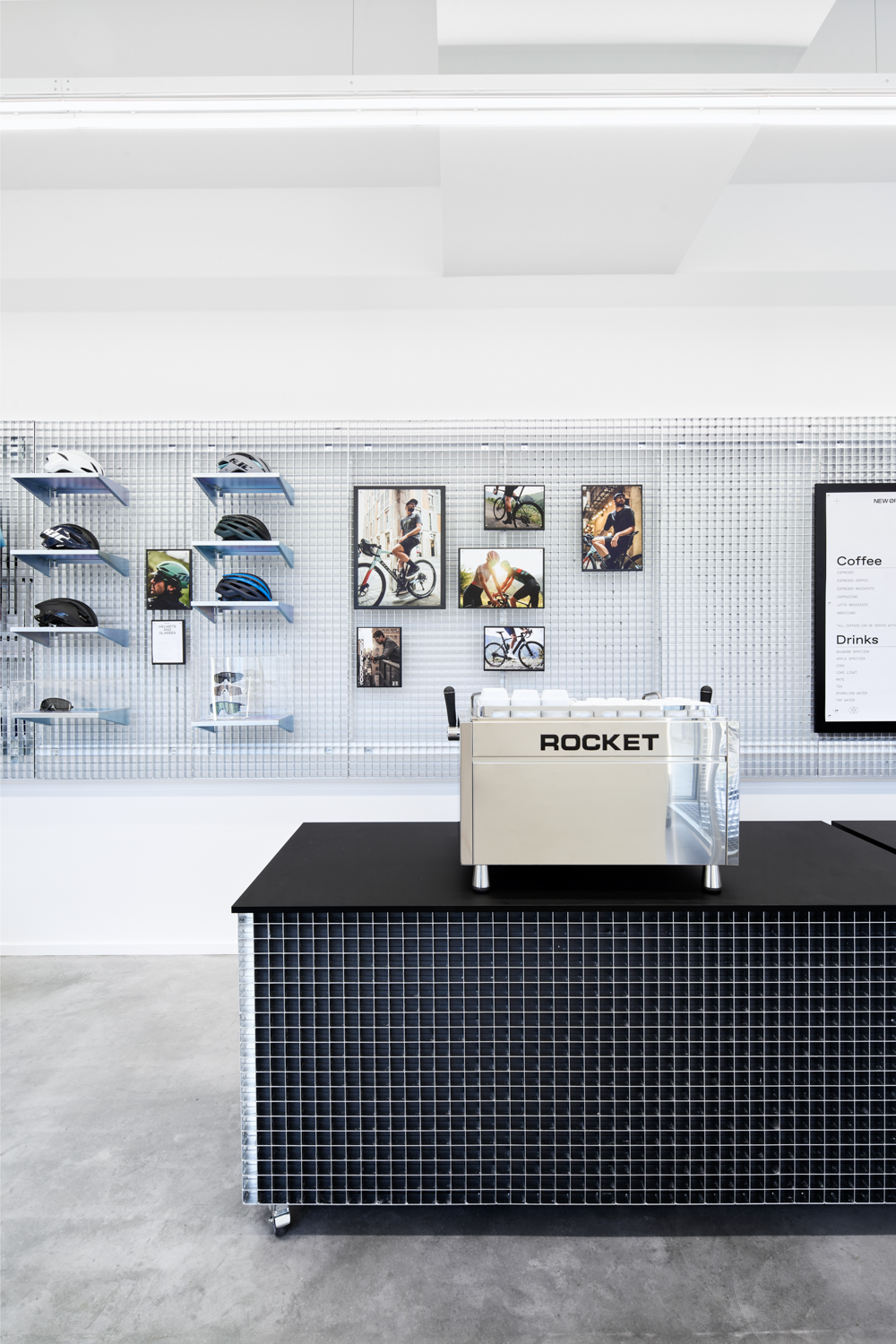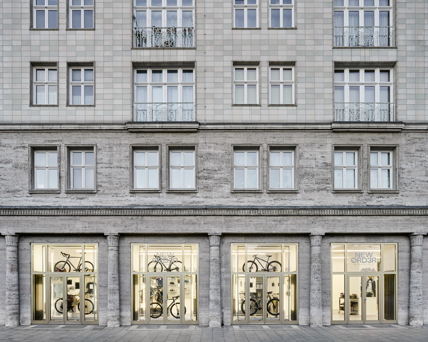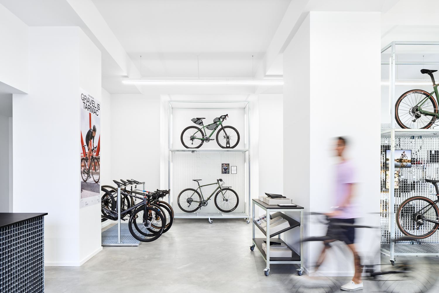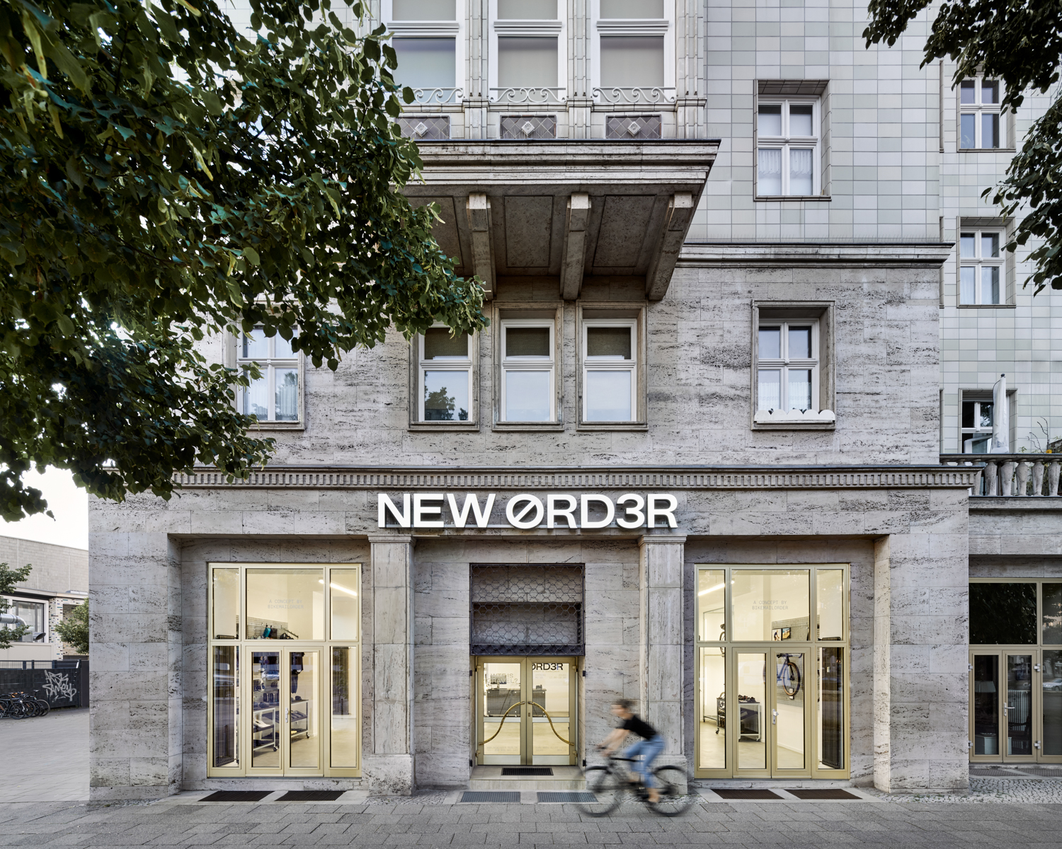 NEW ØRD3R ist ein Fahrradladen auf der Karl-Marx-Allee in Berlin, welcher alle drei Monate seine gesamte Kollektion wechselt. Alle Displays und Möbel sind flexibel und können jederzeit neu angeordnet werden. Mit den verschiedenen Produktträgern können sowohl kleine Produkte, als auch ganze Fahrräder ausgestellt werden. Durch das eigene große Lager in unmittelbarer Nähe, schließt NEW ØRD3R die Lücke zwischen der Produktverfügbarkeit des Online-Handels und der Beratung im stationären Handel. Grafikdesign: Adlips Design Fotos: Annika Feuss