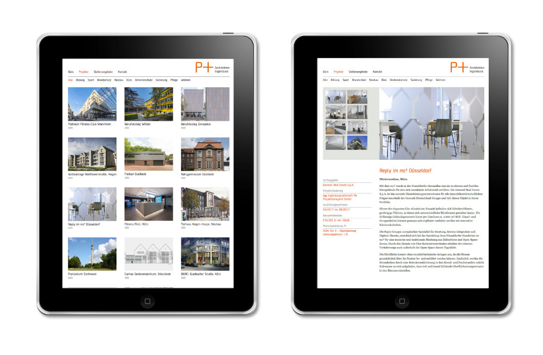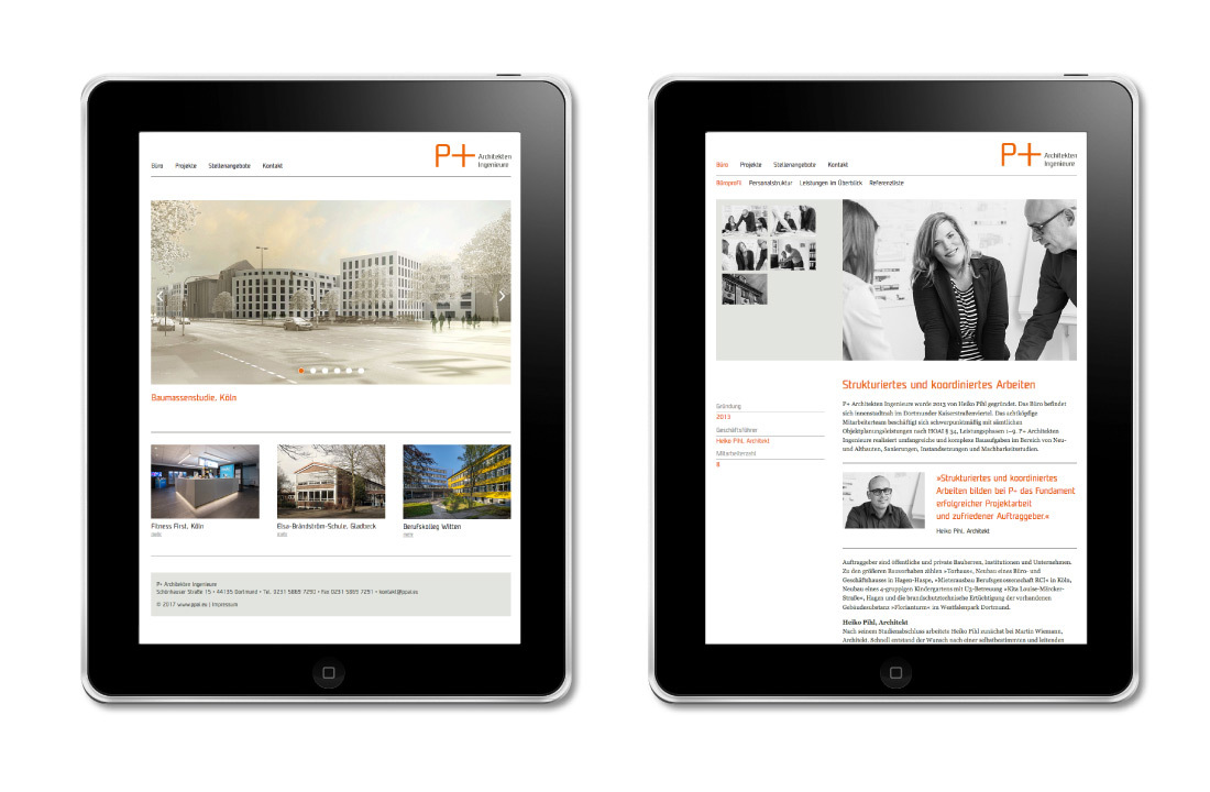Kümpel Lorenz wurde beauftragt ein prägnantes Corporate Design zu entwickeln und umzusetzen. Der Schwerpunkt lag zunächst bei der durchgängigen Umsetzung auf Geschäftsdrucksachen sowie auf Plänen, Listen und Dokumentationen. Anschließend kamen Referenz- und Auquiseunterlagen, Bildsprachenentwicklung und die Website hinzu.
