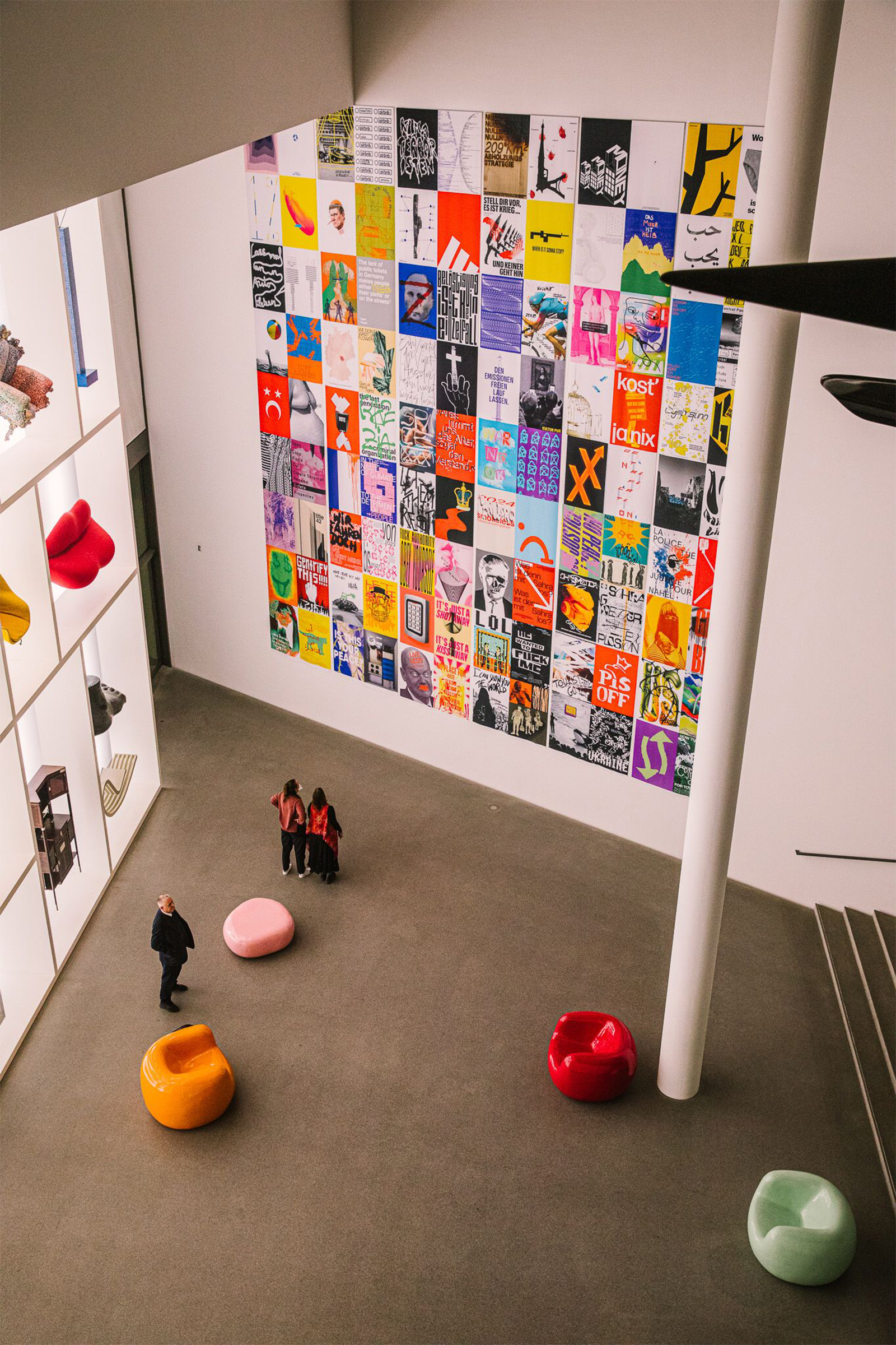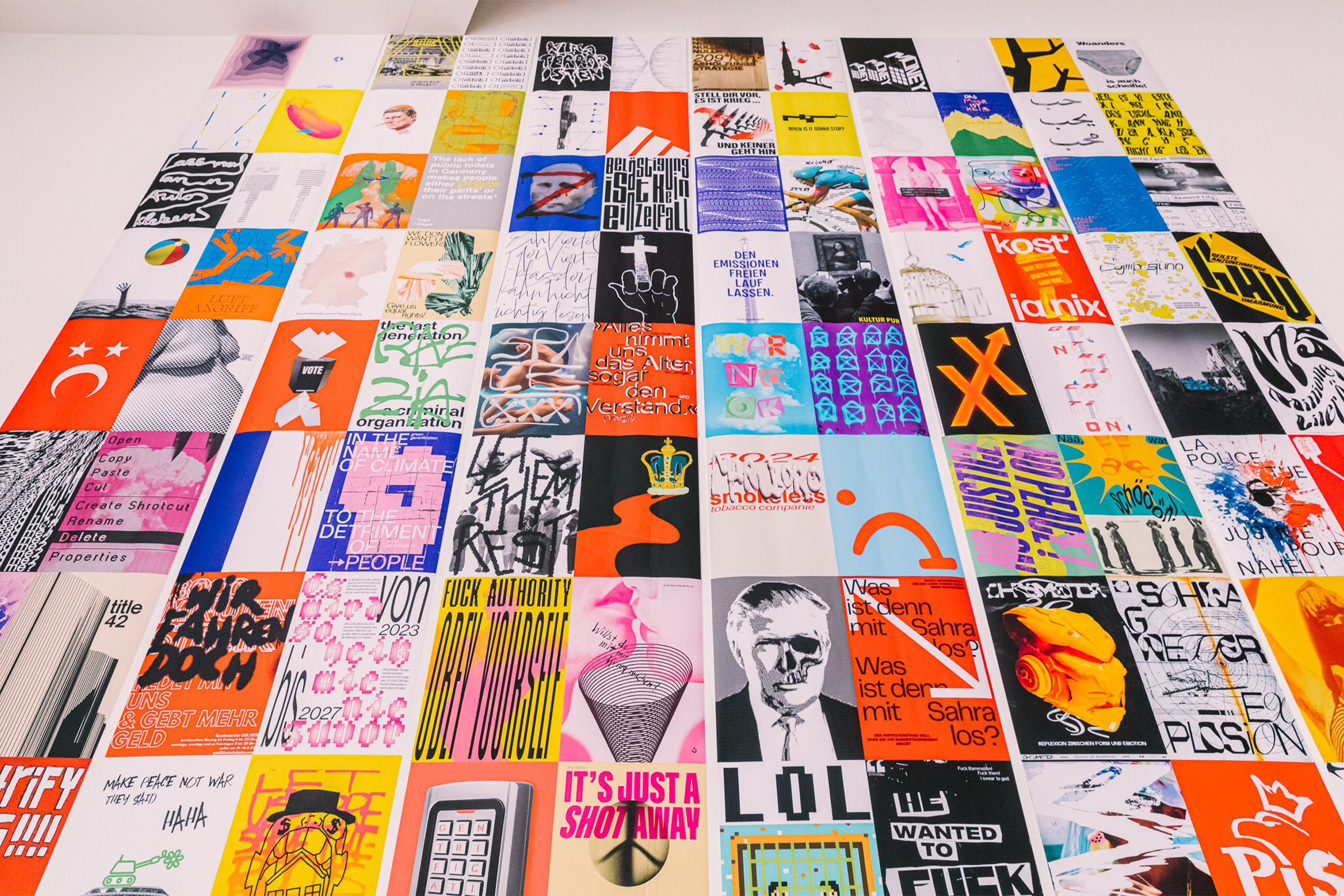 2023 realisierte Studio MOS unter der Art Direktion von Lars Harmsen das Ausstellungskonzept für »100 Poster Battle @ Die Neue Sammlung – The Design Museum, Pinakothek der Moderne München« // Die 10 Meter hohen Textilbahnen, welche eine kuratierte Auswahl an politisch motivierten Plakaten zeigten, bildeten hierbei das Herzstück der Rauminstallation. Begleitend zur Ausstellung wurde ein Katalog konzipiert, der insgesamt 135 Plakate umfasst // (Fotos Ausstellungsansicht: © Markus Lange)
